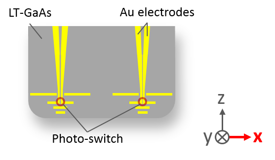 TR系列太赫兹近场探针主要对横向于探针尖端轴的THz电场分量敏感,如上图中x轴方向所示。