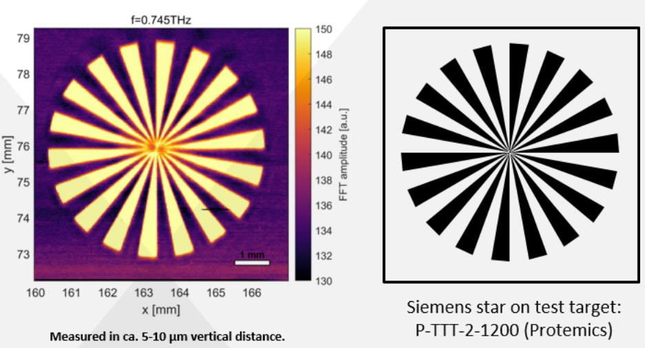 太赫兹测试目标P-TTT-2-1200,铬层厚度为10 nm和50 nm,分别相当于约250欧姆和50欧姆的薄层电阻。